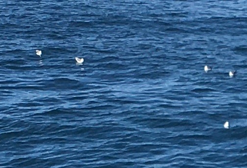 しばらくするとカモメが集まってきてタルカゴから出たオキアミを食べ始めました、青い海に白いカモメ、映画のような穏やかな景色に心が安らぎます。